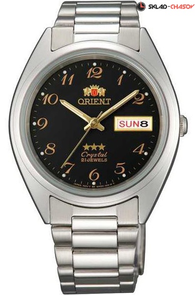 Мужские механические наручные часы с автоподзаводом Orient AB00003B (FAB00003B9) коллекции 3 Stars. Калибр механизма — AB(F49). Запас хода более 40-ка часов. Количество камней - 21. Максимально допустимая погрешность точности хода +25/-15 секунд в сутки. На данной модели отображается дата и день недели. Стрелки и метки покрыты люминесцентным напылением (светятся в темноте). Завинчивающаяся задняя крышка часов.