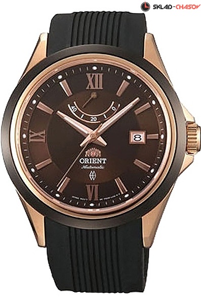 Мужские механические наручные часы Orient AF03003T (FAF03003T0) с автоподзаводом и возможностью ручного завода. Коллекция Power Reserve. Калибр механизма — AF(F6N). Запас хода более 40-ка часов. Количество камней - 22. Максимально допустимая погрешность точности хода +25/-15 секунд в сутки. На циферблате отображается дата, а так же установлен ретроградный индикатор запаса хода. Функция стоп-секунда (остановка секундной стрелки для установки точного времени). Стрелки и метки покрыты люминесцентным напылением (светятся в темноте). Сапфировое стекло. На корпус нанесено стойкое PVD покрытие. Завинчивающаяся задняя крышка. Водонепроницаемость WR100 (10 атм).