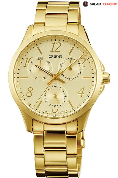 Женские кварцевые наручные часы Orient SX09003C (FSX09003C0). Калибр механизма — SX(KUB). Максимально допустимая погрешность точности хода +20/-20 секунд в месяц. Стрелки покрыты люминесцентным напылением (светятся в темноте). На данной модели отображается дата, день недели и время суток. На корпус и браслет часов нанесено PVD покрытие.
