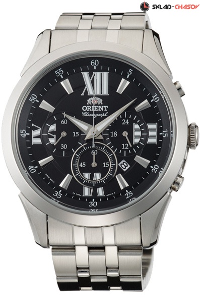 Мужские кварцевые наручные часы с хронографом (секундомером) Orient TW04003B (FTW04003B0). Калибр механизма — TW(KFD). Максимально допустимая погрешность точности хода +20/-20 секунд в месяц. Секундомер может отсчитывать до 60-ти минут. На данной модели отображается дата и индикация времени суток (24-х часовая шкала). Стрелки и метки покрыты люминесцентным напылением (светятся в темноте). Завинчивающаяся задняя крышка для более уверенной водонепроницаемости часов. Водонепроницаемость WR50 (5 атм).