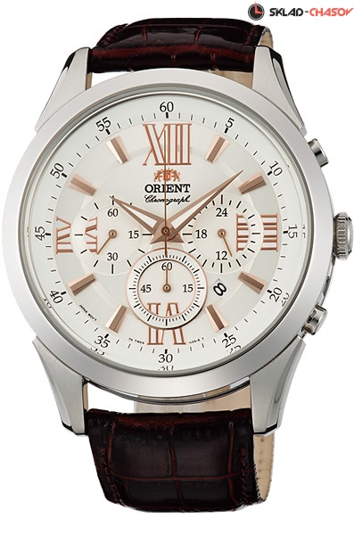 Мужские кварцевые наручные часы с хронографом (секундомером) Orient TW04008W (FTW04008W0). Калибр механизма — TW(KFD). Максимально допустимая погрешность точности хода +20/-20 секунд в месяц. Секундомер может отсчитывать до 60-ти минут. На данной модели отображается дата и индикация времени суток (24-х часовая шкала). Стрелки и метки покрыты люминесцентным напылением (светятся в темноте). Завинчивающаяся задняя крышка для более уверенной водонепроницаемости часов. Водонепроницаемость WR50 (5 атм).