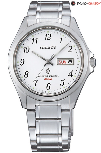Мужские кварцевые наручные часы Orient UG0Q00AS (FUG0Q00AS6). Калибр механизма — UG(HS9). Максимально допустимая погрешность точности хода +20/-20 секунд в месяц. На данной модели отображается дата и день недели. Стрелки и метки покрыты люминесцентным напылением (светятся в темноте). Завинчивающаяся заводная головка и задняя крышка для более уверенной водонепроницаемости часов. Установлено сапфировое стекло устойчивое к царапинам. Водонепроницаемость WR100 (10 атм).