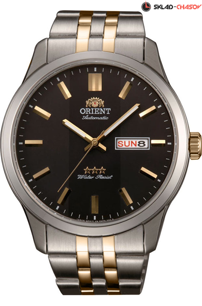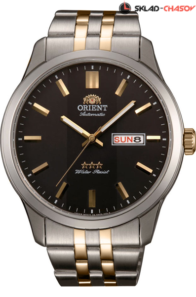 Мужские механические наручные часы с автоподзаводом Orient RA-AB0011B1 (RA-AB0011B19B) коллекции 3 Stars. Калибр механизма — AB(F49). Запас хода более 40-ка часов. Количество камней - 21. Максимально допустимая погрешность точности хода +25/-15 секунд в сутки. На данной модели отображается дата и день недели. Стрелки покрыты люминесцентным напылением (светятся в темноте). На корпус и браслет частично нанесено стойкое PVD покрытие. Завинчивающаяся задняя крышка часов. Водонепроницаемость WR50 (5 атм).