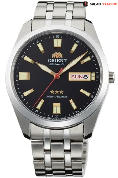 Мужские механические наручные часы с автоподзаводом Orient RA-AB0017B1 (RA-AB0017B19B) коллекции 3 Stars. Калибр механизма — AB(F49). Запас хода более 40-ка часов. Количество камней - 21. Максимально допустимая погрешность точности хода +25/-15 секунд в сутки. На данной модели отображается дата и день недели. Стрелки и метки покрыты люминесцентным напылением (светятся в темноте). Завинчивающаяся задняя крышка часов. Водонепроницаемость WR50 (5 атм).