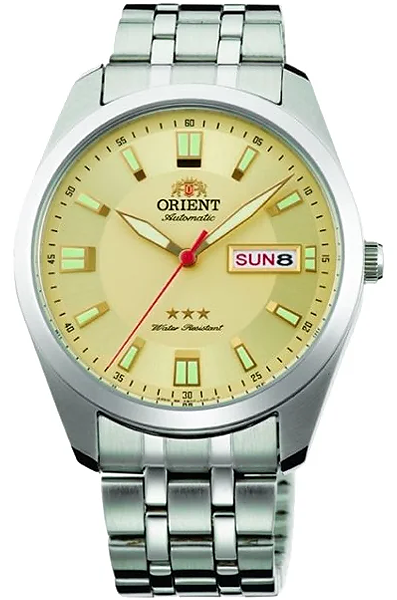 Мужские механические наручные часы с автоподзаводом Orient RA-AB0018G1 (RA-AB0018G19B) коллекции 3 Stars. Калибр механизма — AB(F49). Запас хода более 40-ка часов. Количество камней - 21. Максимально допустимая погрешность точности хода +25/-15 секунд в сутки. На данной модели отображается дата и день недели. Стрелки и метки покрыты люминесцентным напылением (светятся в темноте). Завинчивающаяся задняя крышка часов. Водонепроницаемость WR50 (5 атм).