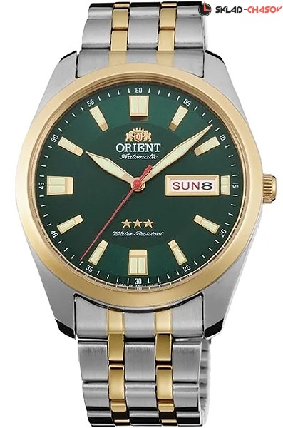 Мужские механические наручные часы с автоподзаводом Orient RA-AB0026E1 (RA-AB0026E19B) коллекции 3 Stars. Калибр механизма — AB(F49). Запас хода более 40-ка часов. Количество камней - 21. Максимально допустимая погрешность точности хода +25/-15 секунд в сутки. На данной модели отображается дата и день недели. Стрелки и метки покрыты люминесцентным напылением (светятся в темноте). На корпус и браслет частично нанесено стойкое PVD покрытие. Завинчивающаяся задняя крышка часов. Водонепроницаемость WR50 (5 атм).
