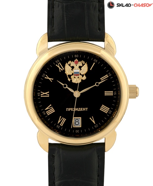 Подчеркнут ваш статус и чувство стиля наручные часы с государственной символикой из серии Президент. Аккуратный круглый корпус с цветом покрытия желтое золото в сочетании с черным циферблатом смотрится роскошно на любом запястье. Японский кварцевый часовой механизм порадует высокой точностью, а стальной корпус – прочностью и долговечностью. Минеральное стекло надежно защищает часы от попадания пыли и случайных ударов. Мягкий кожаный ремешок удобен в носке, не вызывает неприятных ощущений.
