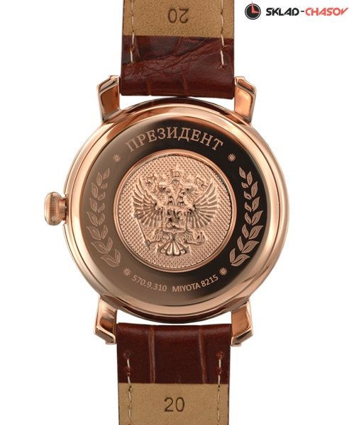 Расскажут об успешности своего обладатели мужские часы Президент круглой формы. Отдельного внимания заслуживает белый циферблат с индикатором даты, украшенный объемным двуглавым орлом. На задней крышке найдете его отчеканенное изображение. Удобный кожаный ремешок надежно фиксирует часы на запястье, что обеспечит комфорт и удобство при ношении. Японский часовой механизм гарантирует безукоризненную работу. Водозащита 3 АТМ обеспечит защиту от влажных условий. Минеральное стекло убережет детали в случае удара либо падения.
