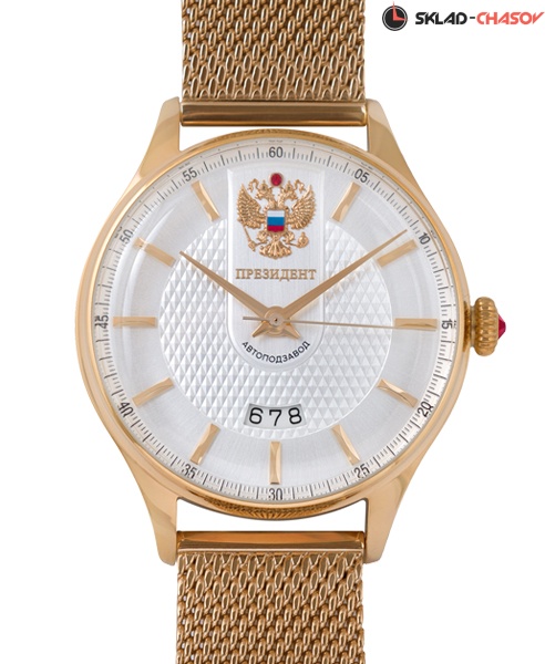 Модели современных часов из новой коллекции «Президент» отличает респектабельность и классический стиль в истинном понимании этого слова. Это выбор надежных мужчин, никогда не отступающих от своих принципов и готовых на все ради своего дела, карьеры. Классический дизайн часов позволяет надевать эту модель каждый день, не задумываясь о выборе подходящих аксессуаров и одежды. Деловая встреча или романтическое свидание – эти современные часы помогут не опоздать и подчеркнут Ваш безукоризненный стиль. Даже несмотря на все новые разработки, наши механические часы компании Часовое производство "Русское время" с автоподзаводом не спешат уходить в историю. И 100% не уйдут еще долгие годы: ведь их простота в использовании, точность хода заслужили доверие людей навсегда. Такие часы в стальном корпусе хорошо обезопасены от мелких повреждений и абсолютно безопасны для здоровья. Нержавеющая сталь – гипоаллергенный материал, поэтому модель хорошо подойдет всем, кто ценит 100% качество и заботится о своем здоровье. Розовый цвет покрытия – лучший вариант для тех, кто предпочитает все нестандартное, но чтит традиции. Часы с таким покрытием в моде уже не первый сезон и не будут сдавать свои позиции. Отлаженной работе браслета данных часов может позавидовать даже ювелирное изделие. В то же время, он крайне прочен, и с ним риск потерять Ваши часы сводится к минимуму.