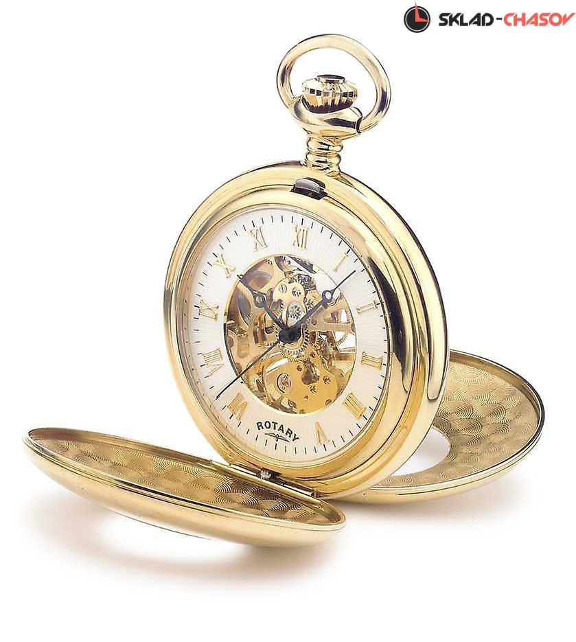Механические карманные часы, Скелетон. Диаметр корпуса 47,5 мм. Покрытие PVD Gold.