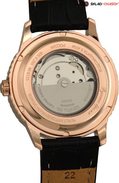Мужские классические наручные часы Русское время. Присутствует окошко даты. На стрелки нанесен светонакопительный состав. Завинчивающаяся задняя крышка с прозрачным окошком, позволяющим следить за слаженной работой механизма. Точность хода обеспечивает японский механический механизм с автоподзаводом Miyota. Гарантия 1 год.