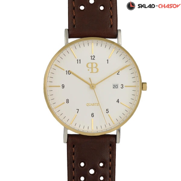 Стильный дизайн циферблата с золотистыми временными отметками и стрелками покрыт устойчивым к царапинам и потертостям минеральным стеклом. Которое не теряет прозрачности в течение многих лет активной эксплуатации. Водонепроницаемый корпус аксессуара характеризуется высокой прочностью. Он не окисляется и не покрывается ржавчиной, сохраняя привлекательный внешний вид десятки лет. Японский кварцевый механизм гарантирует высокую точность, что особенно важно пунктуальным личностям.
