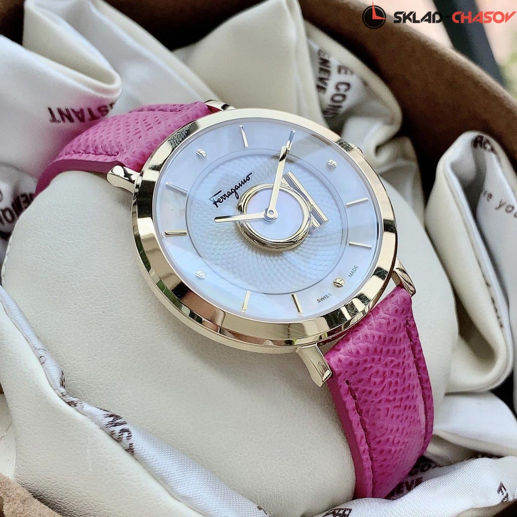 Эти часы с великолепным дизайном и непревзойденным швейцарским качеством сделают женщину еще привлекательнее. New Minuetto. Циферблат покрыт натуральным перламутром Pinctada Margaritifera. Метки в виде точек и штрихов. Круглый корпус. Рифленая заводная головка украшена камнем в форме кабошона. Задняя крышка с гравировкой. Ремешок из натуральной кожи. Классическая застежка.