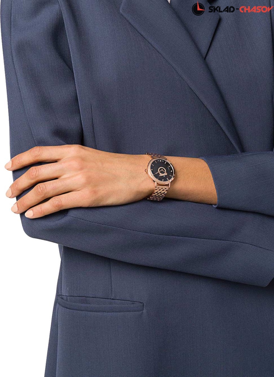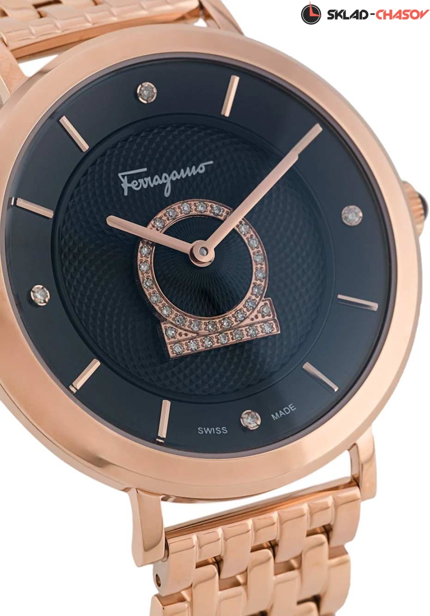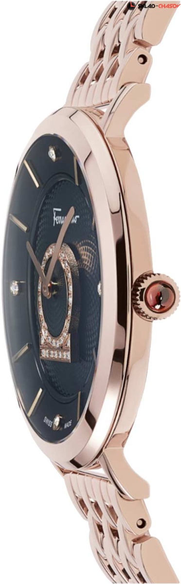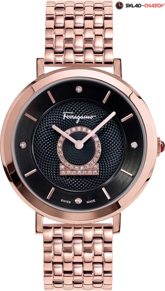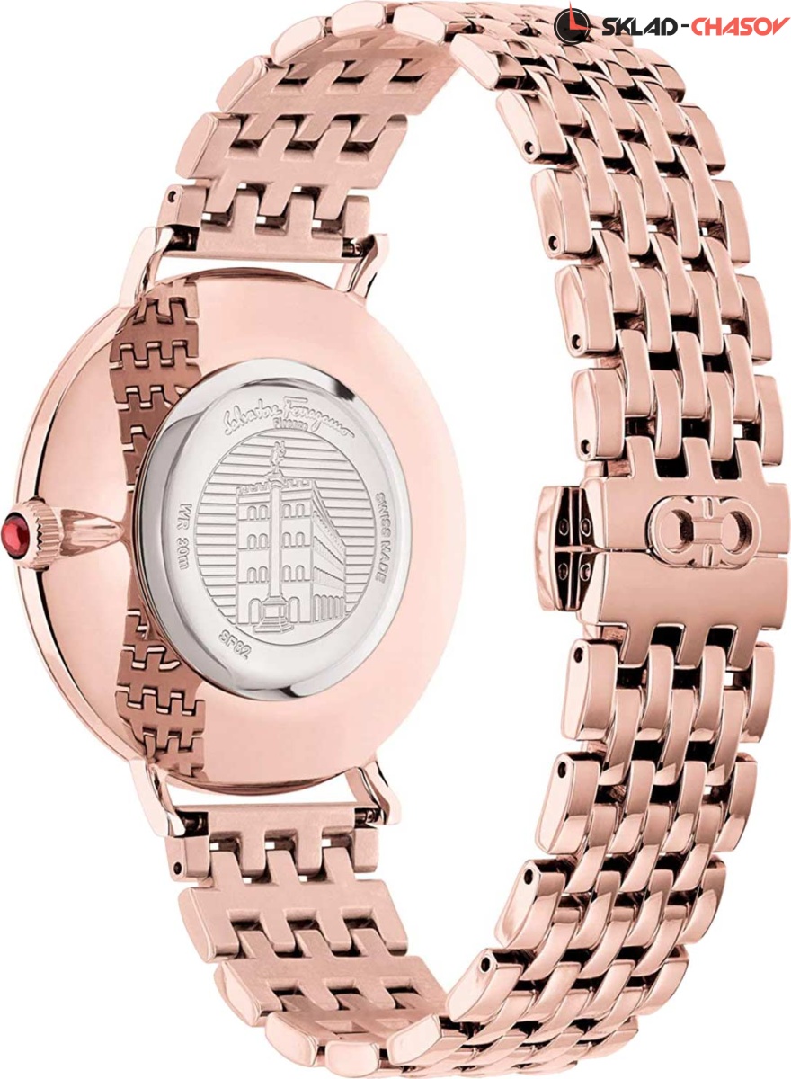 Женственность, изысканность и элегантность никогда не выходят из моды, а завораживающий блеск бриллиантов поражают даже самое богатое воображение! Minuetto. Женские часы с круглым корпусом. Метки в виде точек и штрихов. Рифленая заводная головка украшена камнем в форме кабошона. Задняя крышка украшена выгравированным изображением дворца Palazzo Spini Ferroni. Браслет с раскладывающейся застежкой.