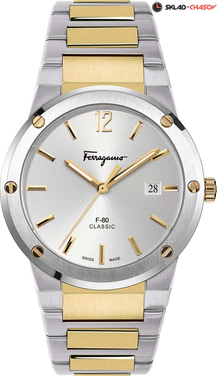 Стильный и яркий дизайн этих часов не оставит равнодушным даже самого страстного консерватора. F-80 Classic. Мужские часы. Циферблат выполнен по технологии Sunray (солнечные лучи). Метки в виде штрихов и арабской цифры 12. Окошко даты находится в положении 3 часа. Безель украшен винтами. Рифленая заводная головка. Задняя крышка украшена выгравированным изображением дворца Palazzo Spini Ferroni. Браслет с раскладывающейся застежкой.