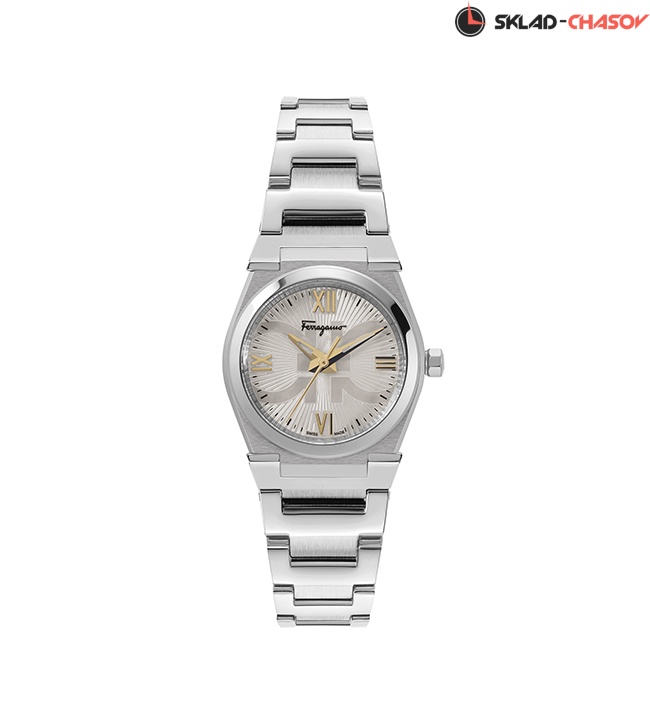 Элегантность, высокое качество. Великолепные часы для леди, которые умеют наслаждаться жизнью. Salvatore Ferragamo VegaКорпус из стали имеет стильную форму и плавно сопряжен с браслетом переменной ширины. Три стрелки и римские цифры желтого цвета.