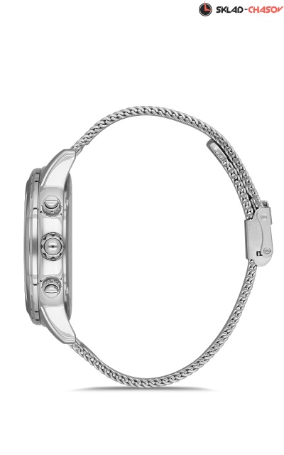 Корпус: нержавеющая сталь 316L, цвет серебристый, размер 45 мм, водозащита 5 BAR. Браслет: нержавеющая сталь 316L, цвет серебристый, размер 22 мм. Механизм: японский кварцевый, калибр Miyota JP25. Цвет циферблата черный, стекло минеральное.