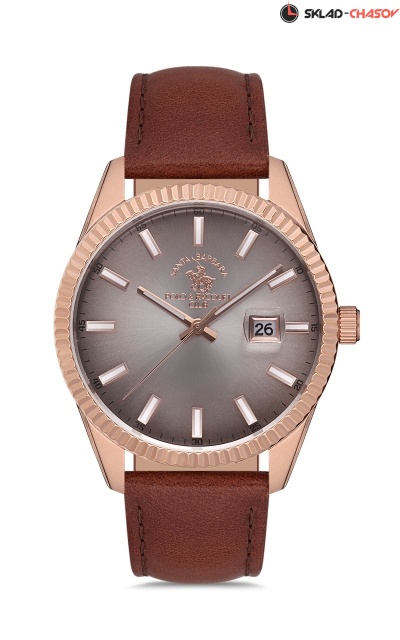 Корпус: нержавеющая сталь 316L, цвет розовый, размер 44 мм, водозащита 5 BAR. Ремешок: натуральная кожа, цвет коричневый, размер 22 мм. Механизм: японский кварцевый, калибр Miyota 2315. Цвет циферблата золотой, стекло минеральное.