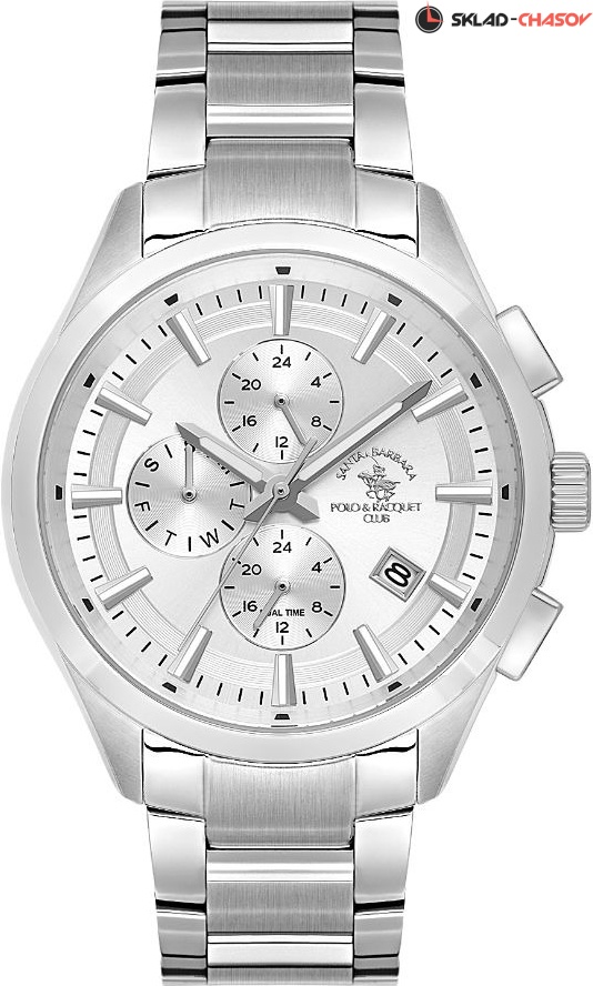 Мужские наручные часы с дополнительным отображением на малых циферблатах второго часового пояса, дня недели и текущего времени в 24-х часовом формате. Присутствует окошко даты. Завинчивающаяся задняя крышка. Браслет с раскладывающейся застежкой.