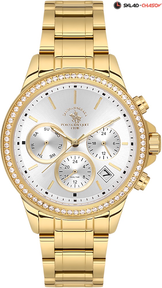 Элегантные женские часы с многофункциональными осложнениями сочетают в себе утонченный дизайн и высокую практичность. Модель в круглом корпусе из гипоаллергенной нержавеющей полированной стали привлекает внимание роскошным безелем, украшенным сверкающими кристаллами в технике паве. Циферблат, выполненный по технологии Sunray, играет переливами света при каждом движении запястья, создавая эффект солнечных лучей. Функциональность подчеркивают дополнительные циферблаты, отображающие 12-ти и 24-х часовой формат времени, второй часовой пояс и день недели, а также удобное окошко даты. Четкость считывания информации обеспечивают прямоугольные стрелки и метки с люминесцентным покрытием для идеальной видимости в темноте. Надежность модели гарантируют рифленая заводная головка с защитой, завинчивающаяся задняя крышка и прочный стальной браслет с раскладывающейся застежкой, оснащенной системой блокировки для дополнительной безопасности. Эти часы станут идеальным спутником для современных женщин, ценящих безупречный стиль и функциональность. Гарантия 2 года.
