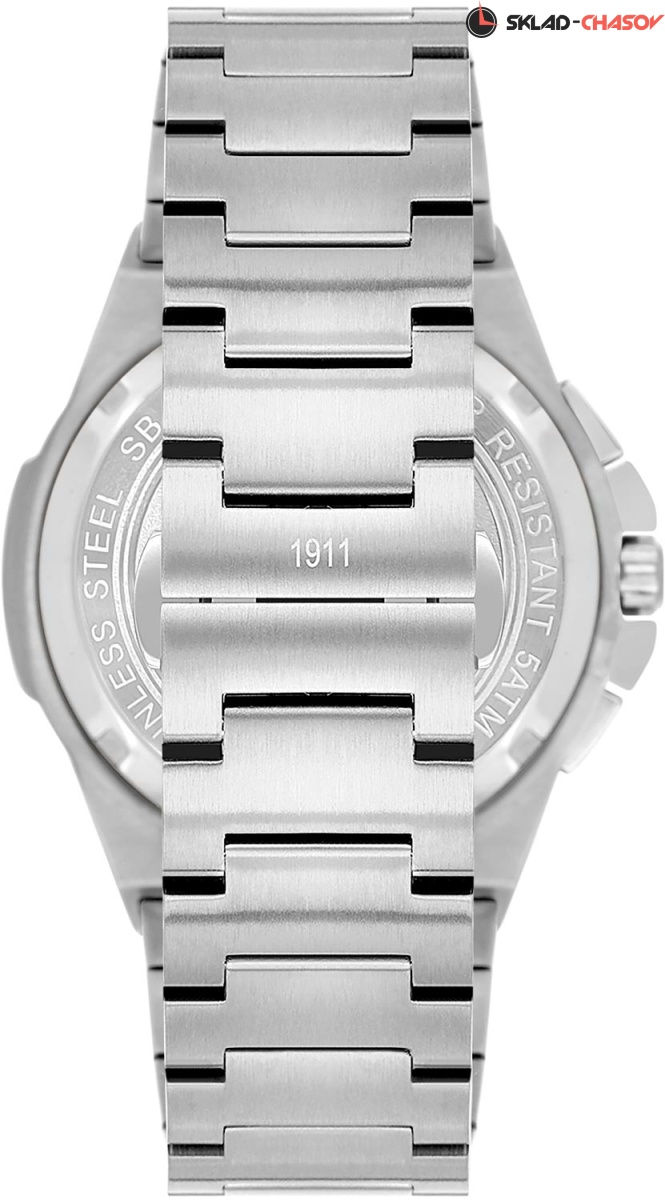Заостренные прямоугольные стрелки в стиле Baton с люминесцентным покрытием, которое светится в темноте после непродолжительной зарядки на свету. Рифленая заводная головка с защитой. Надежный стальной браслет с матовой отделкой. Раскладывающаяся застежка.