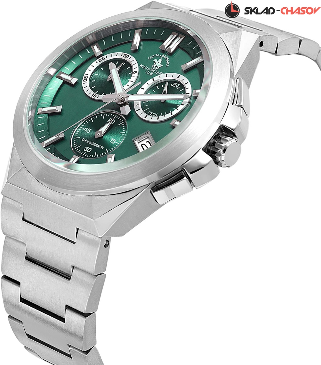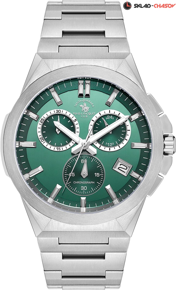 Функциональные мужские часы-хронограф с секундомером. Стальной корпус с матовой отделкой. Двухуровневый матовый циферблат украшен фирменным логотипом. Накладные метки в виде штрихов. 12-ти и 24-х часовой формат времени. Окошко даты находится в положении 4 часа.