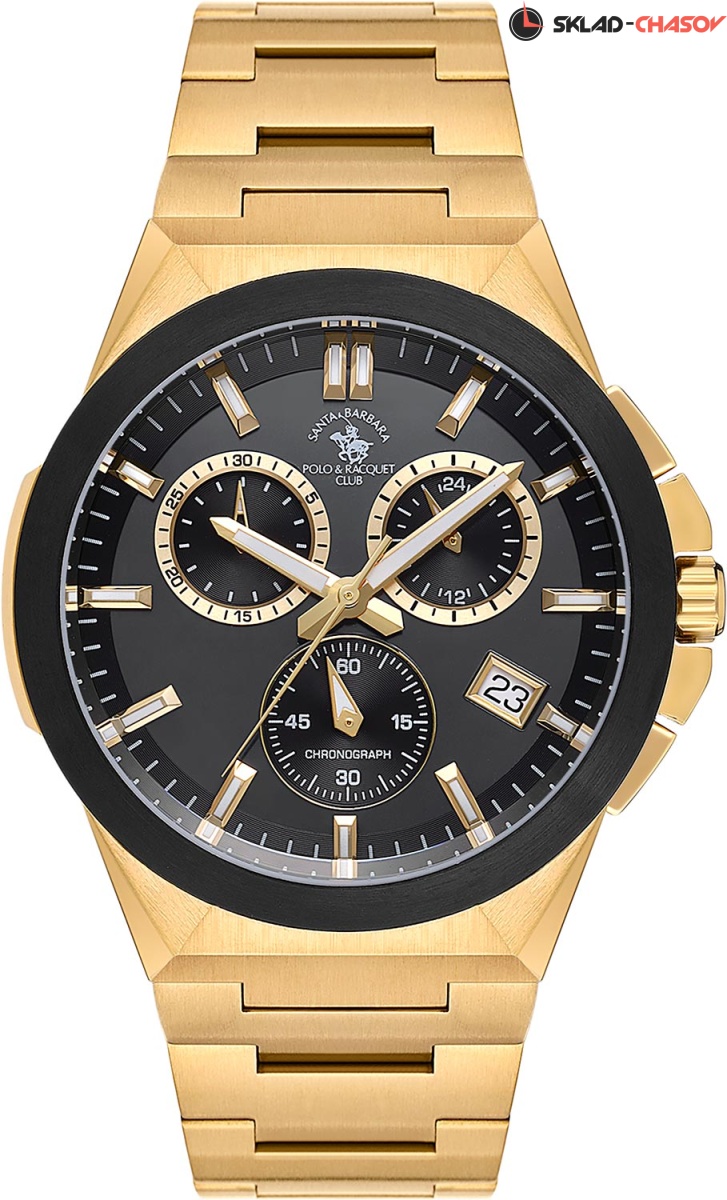 Функциональные мужские часы-хронограф с секундомером. Стальной корпус с матовой отделкой. Двухуровневый матовый циферблат украшен фирменным логотипом. Накладные метки в виде штрихов. 12-ти и 24-х часовой формат времени. Окошко даты находится в положении 4 часа.