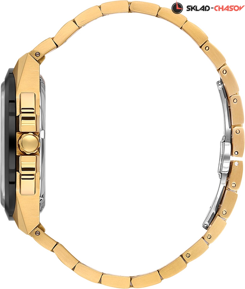 Заостренные прямоугольные стрелки в стиле Baton с люминесцентным покрытием, которое светится в темноте после непродолжительной зарядки на свету. Рифленая заводная головка с защитой. Надежный стальной браслет с матовой отделкой. Раскладывающаяся застежка.