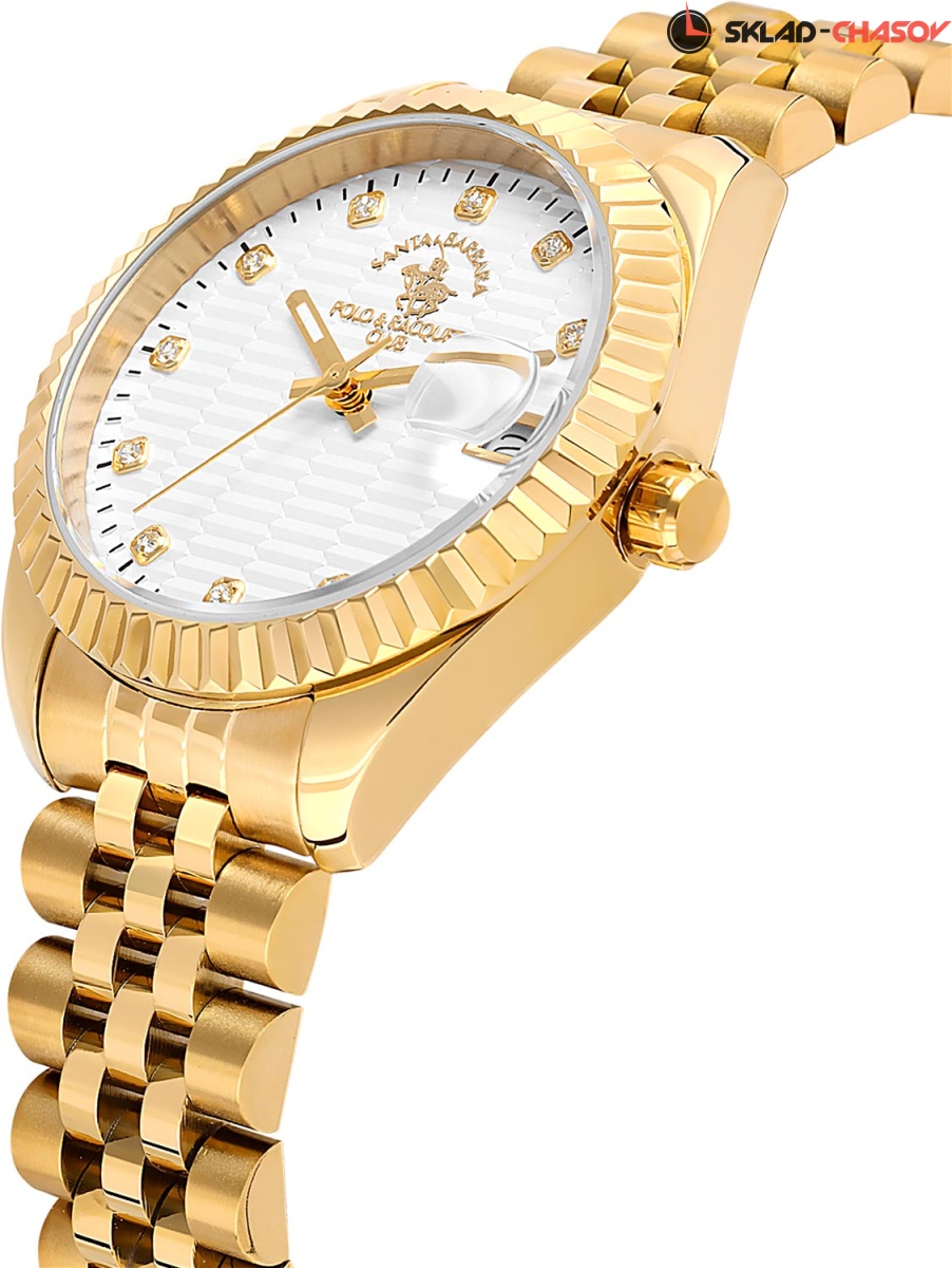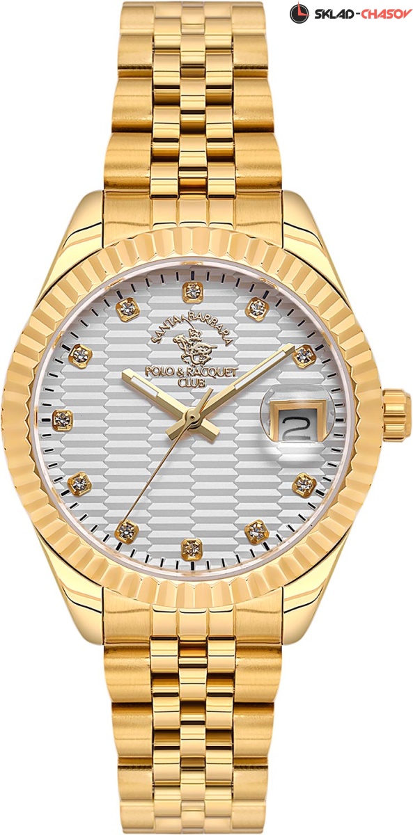 Женские часы с надежным японским механизмом. Циферблат украшен фирменным логотипом. Метки в виде точек, украшенных кристаллами. Окошко даты с увеличительным стеклом. Прямоугольные стрелки в стиле Baton с люминесцентным покрытием, которое светится в темноте после непродолжительной зарядки на свету. Рифленая заводная головка. Надежный стальной браслет с раскладывающейся застежкой.