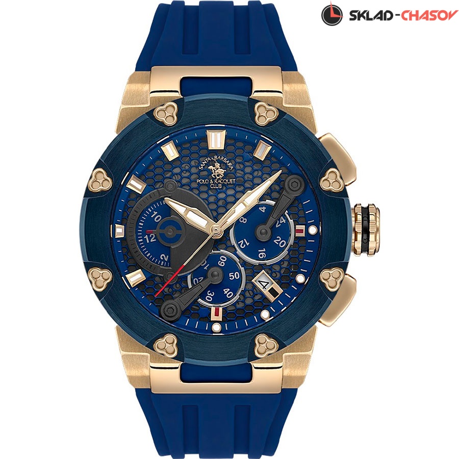 Мужской кварцевый хронограф. Калибр механизма VD33. Центральные часовая, минутная и секундная стрелки. Апертура даты между 4 и 5 часами. 12/24х часовой формат времени. Секундомер. Синий циферблат. Круглый корпус выполнен из нержавеющей стали с IP покрытием цвета желтого золота. Диаметр корпуса составляет 45 мм. Синий силиконовый ремешок, стандартная застежка. Прочное минеральное стекло с антибликовым покрытием устойчивое к мелким механическим повреждениям. Водостойкость WR 100 (плавание без погружения).