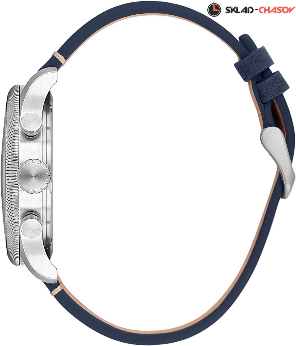 Многофункциональные мужские часы-хронограф с секундомером и тахиметром. Стальной корпус с матовой отделкой. Декоративный рифленый безель. 12-ти и 24-х часовой формат времени. Окошко даты находится между отметками 4 и 5 часов. Матовый циферблат украшен фирменным логотипом.
