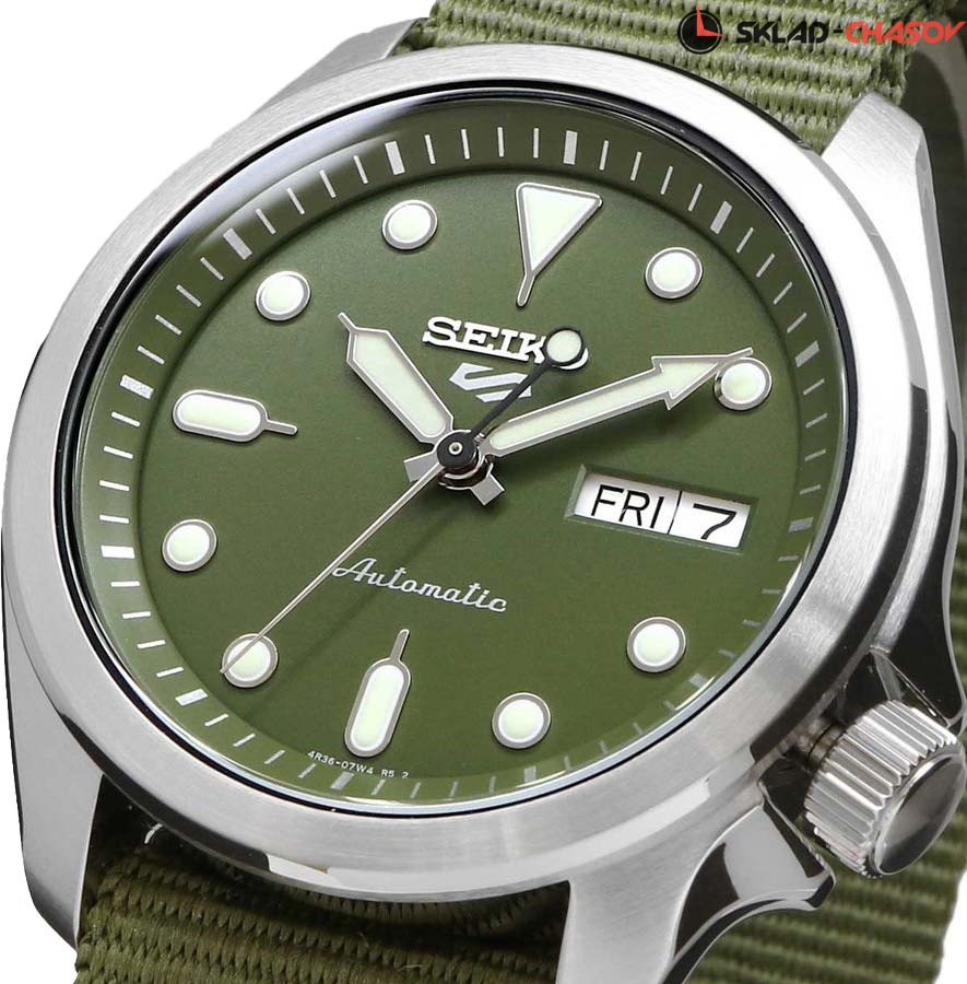 Практичные и удобные наручные часы Seiko из серии Seiko 5 с выраженным спортивным стилем. Автоматические часы с возможностью ручного завода. В механизме 24 камня, частота 21600 полуколебаний в час. Запас хода 41 час. Функция stop-second. Присутствует апертура даты и дня недели. На стрелки и часовые метки нанесен светонакопительный состав для возможности считывания времени в темноте. Циферблат закрывает минеральное стекло Hardlex повышенной прочности. Заводная головка с защитой смещена в положение 4 часа. Завинчивающаяся прозрачная задняя крышка. Нейлоновый ремешок с классической застежкой. Вес часов 75 грамм. Гарантия 2 года. Функции: День недели. Число. Комплектация: Часы, фирменная упаковка, фирменный пакет, инструкция на русском языке, заполненный гарантийный талон с международной гарантией.