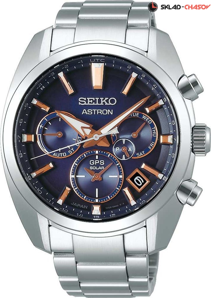 Часы со встроенным GPS-приемником определяют часовой пояс, дату и точное время. Защищены от магнитных полей. Питание от солнечной энергии, индикатор уровня зарядки батареи. Функция сохранения энергии. Запас хода при полной зарядке аккумулятора 6 месяцев, при включенной функции сохранения энергии - 2 года. Функция предотвращения перезарядки. Ручная и автоматическая корректировка времени и часового пояса. Установка летнего времени. Функции приема GPS-сигнала: режим «'В полете», показ количества спутников, показ результата последнего приема, проверка установленного часового пояса, автоматический прием информации о секунде координации. Вечный календарь до 28 февраля 2100 г. Мировое время - часы распознают все 39 часовых поясов. Второй часовой пояс. Ретроградный индикатор отображает: состояние зарядки батареи, режим «В полете», включение/отключение летнего времени, способ приема GPS-сигнала. Окошко даты. День недели отображается на отдельном циферблате. Керамический безель. Завинчивающаяся задняя крышка. Браслет с раскладывающейся застежкой и системой Smart Adjuster. Гарантия 2 года.