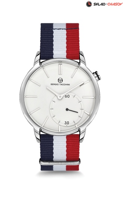 Корпус: нержавеющая сталь 316L, цвет серебристый, размер Ø44 мм, водозащита 10 ATM. Ремешок: нейлоновый ремень, цвет мультиколор, размер 20 мм. Механизм: японский кварцевый, калибр Seiko VD78. Цвет циферблата серебристый, стекло минеральное.