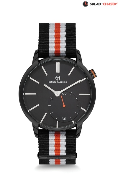 Корпус: нержавеющая сталь 316L, цвет черный PVD, размер Ø44 мм, водозащита 10 ATM. Ремешок: нейлоновый ремень, цвет мультиколор, размер 20 мм. Механизм: японский кварцевый, калибр Seiko VD78. Цвет циферблата черный, стекло минеральное.