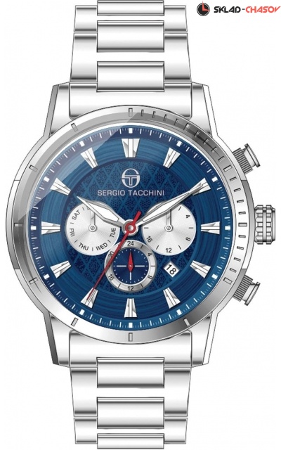 Корпус: нержавеющая сталь 316L, цвет серебристый, размер Ø45 мм, водозащита 5 ATM. Браслет: нержавеющая сталь 316L, цвет серебристый, размер 22 мм. Механизм: японский кварцевый, калибр Miyota JP25. Цвет циферблата синий, стекло минеральное.
