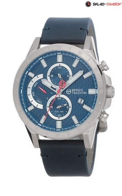 Корпус: нержавеющая сталь 316L, цвет серебристый, размер Ø45 мм, водозащита 5 BAR. Ремешок: натуральная кожа, цвет серебристый, размер 22 мм. Механизм: японский кварцевый, калибр Miyota JP15-3. Цвет циферблата синий, стекло минеральное.