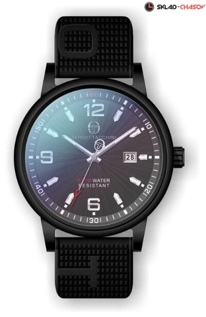 Наручные часы мужские, кварцевые с мех. индикацией, латунный корпус черного цвета, черный циферблат, силиконовый браслет черного цвета, дата.