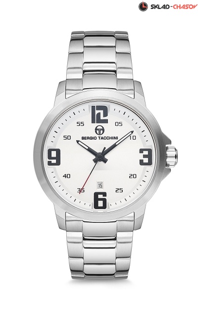 Корпус: нержавеющая сталь 316L, цвет серебристый, размер 43 мм, водозащита 10 ATM. Браслет: нержавеющая сталь, цвет белый, размер 22 мм. Механизм: японский кварцевый, калибр Miyota 2115. Цвет циферблата белый, стекло минеральное.