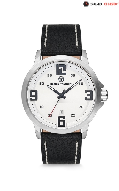 Корпус: нержавеющая сталь 316L, цвет серебристый, размер 43 мм, водозащита 10 ATM. Ремешок: натуральная кожа, цвет черный, размер 22 мм. Механизм: японский кварцевый, калибр Miyota 2115. Цвет циферблата белый, стекло минеральное.