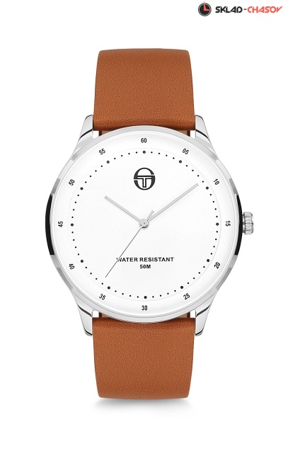 Корпус: нержавеющая сталь 316L, цвет серебристый, размер Ø42 мм, водозащита 5 ATM. Ремешок: натуральная кожа, цвет коричневый, размер 22 мм. Механизм: японский кварцевый, калибр Miyota 2035. Цвет циферблата белый, стекло минеральное.