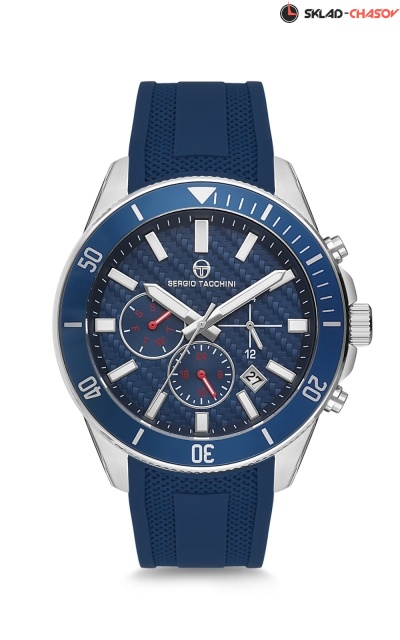 Корпус: нержавеющая сталь 316L, цвет серебристый, размер Ø45 мм, водозащита 5 ATM. Ремешок: силиконовый ремень, цвет синий, размер 22 мм. Механизм: японский кварцевый, калибр Miyota JP25. Цвет циферблата синий, стекло минеральное.