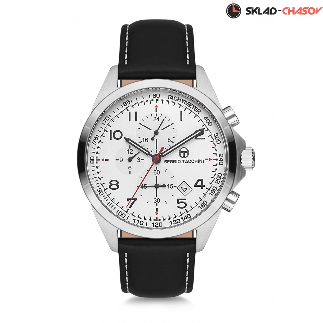 Корпус: нержавеющая сталь 316L, цвет серебристый, размер 45 мм, водозащита 5 ATM. Ремешок: натуральная кожа, цвет черный, размер 22 мм. Механизм: японский кварцевый, калибр Seiko VD37A. Цвет циферблата белый, стекло минеральное.