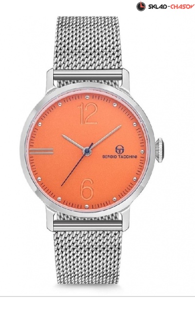Корпус: нержавеющая сталь 316L, цвет серебристый, размер Ø34 мм, водозащита 3 Атм. Браслет: нержавеющая сталь 316L, цвет серебристый. Механизм: японский кварцевый. Цвет циферблата оранжевый, стекло минеральное.