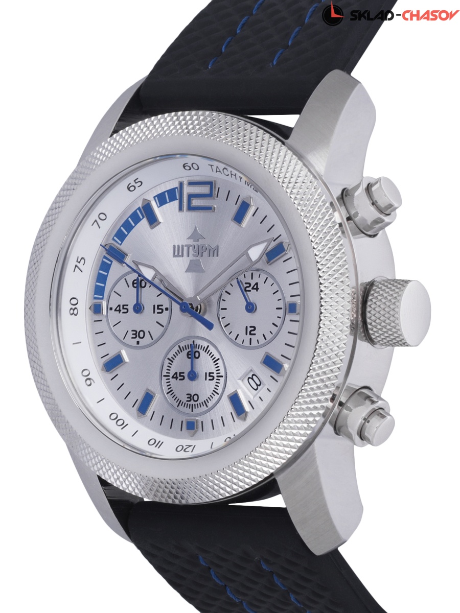 Яркие мужские часы Штурм выполнены из прочной нержавеющей стали и минерального стекла. В основе - кварцевый механизм высокой точности. Толщина корпуса всего 13 мм, а диаметр – 44,3 мм. Часы эффектные и стильные, но при этом достаточно легкие. Ремешок не давит и не натирает, его легко можно выставить на комфортную ширину обхвата руки.