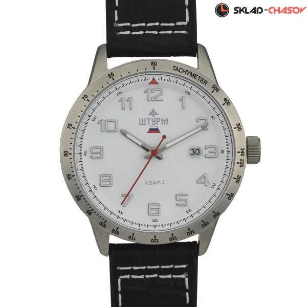 Кварцевые часы. Механизм Miyota. Корпус из нержавеющей стали. Минеральное стекло. Циферблат белый. Ремешок из натуральной кожи. Водонепроницаемость при давлении 10 атм. (WR 100) Указатель даты. Диаметр корпуса 45 мм. Мужские часы.
