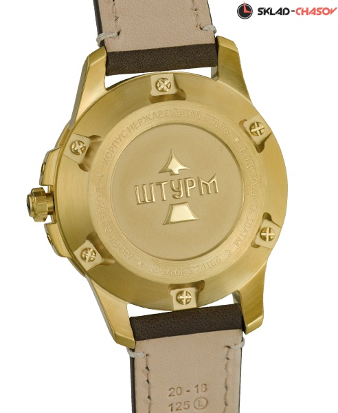 Корпус из нержавеющей стали золотого цвета. Минеральное стекло с антибликовым покрытием.