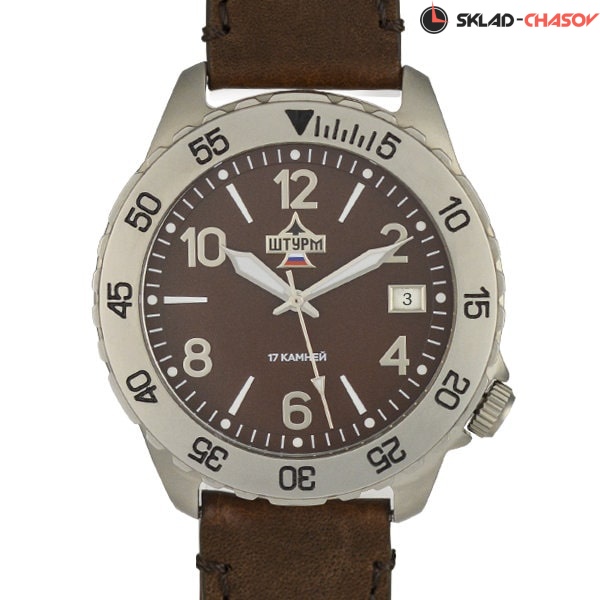 Механические (2414А, Россия)Корпус (безель крутится) Нержавеющая сталь, МатовыйВодозащита 5 атмМинеральное стекло Кожаный ременьдиаметр: 42,1 мм; толщина корпуса: 11,2 ммразмер ремня: 22 мм Люминесцентное покрытие на элементах циферблата
