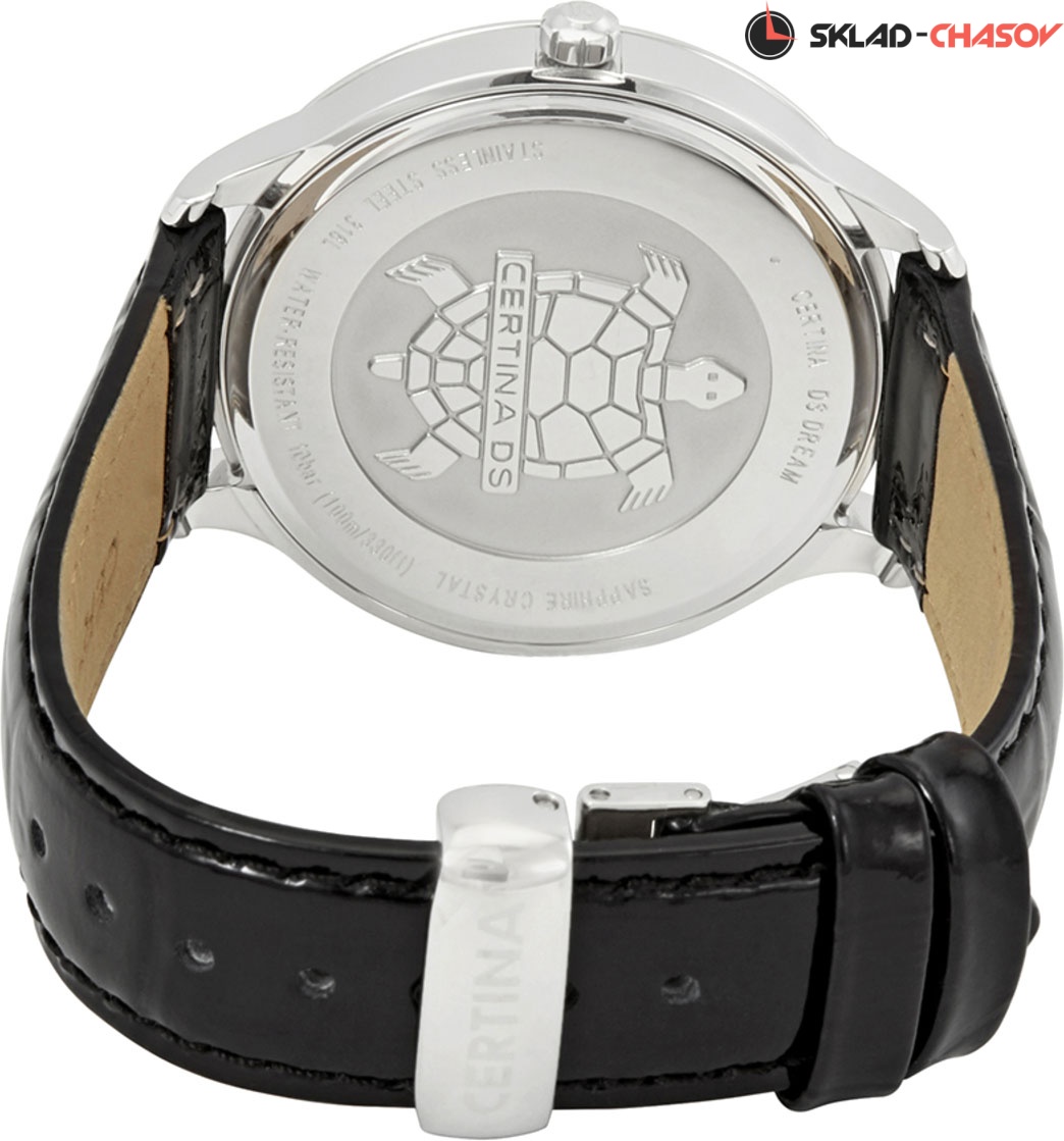 Продуманный дизайн в современном стиле смотрится актуально в повседневном образе деловой женщины. Безупречность во все времена. DS Dream Precidrive. Водонепроницаемые унисекс часы. Фирменная технология PreciDrive обеспечивает погрешность не более +/-10 сек в год (в 10 раз точнее обычных кварцевых часов). Круглый стальной корпус. Острые стрелки в стиле Alpha с люминесцентным покрытием, которое светится в темноте после непродолжительной зарядки на свету. Метки в виде штрихов. Окошко даты находится в положении 6 часов. Рифленая заводная головка. Задняя крышка с гравировкой. Удобный кожаный ремешок с раскладывающейся застежкой.