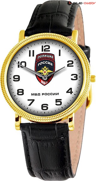 Коллекция часов Патриот создана с символикой значимых и важнейших событий в истории России и государственных учреждений нашей страны. Российские часы посвященные символам величия СССР и Российской Федерации. Патриот. Унисекс. На циферблате изображение герба Полиции Министерства внутренних дел России. Круглый латунный корпус. Кожаный ремешок.